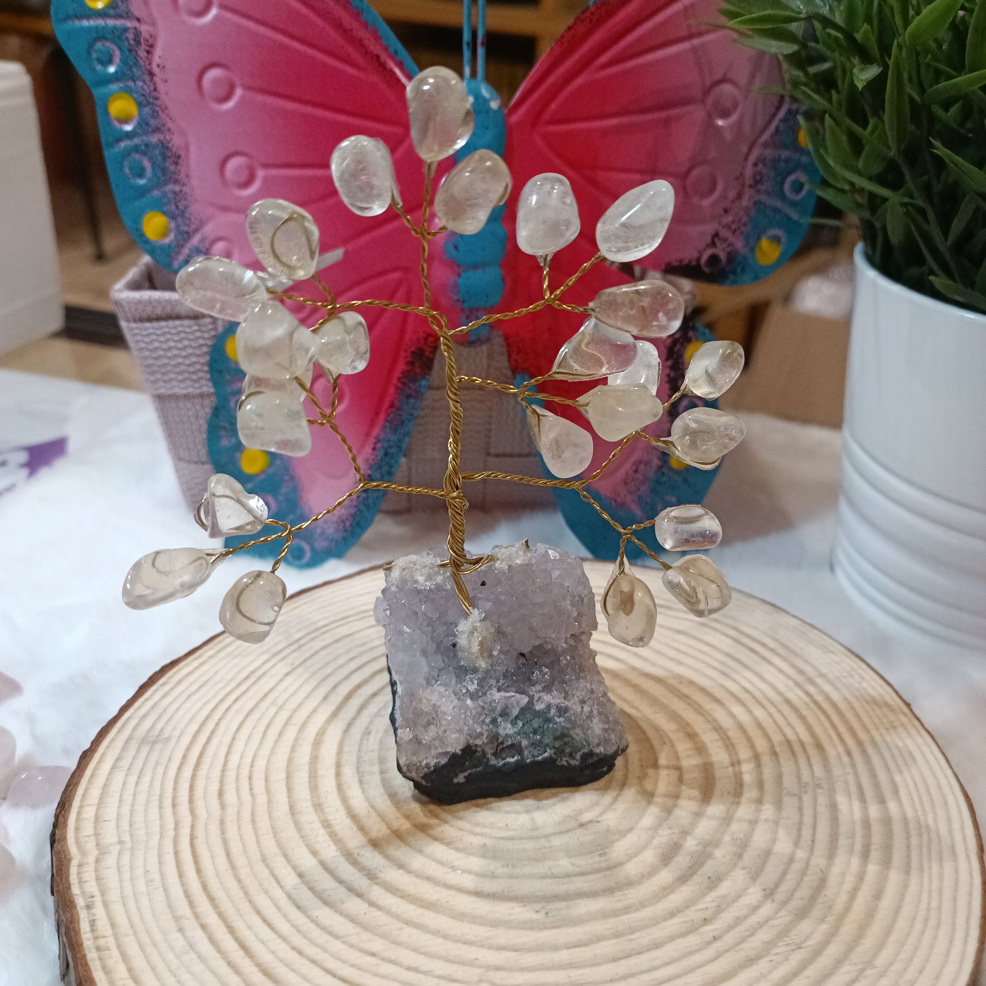 Árbol tamaño mediano con tallo alambrado sobre base de amatista.