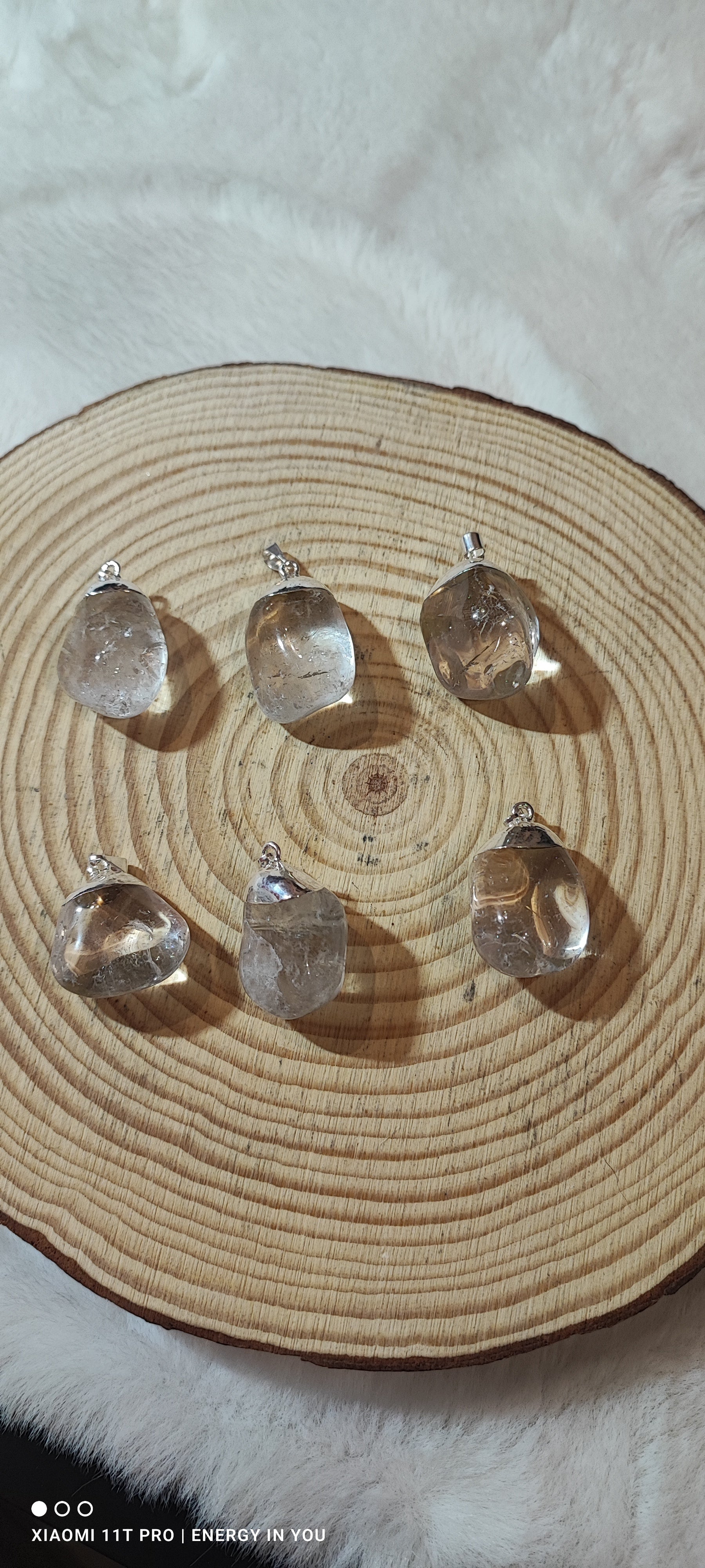 Colgante de Cuarzo Brasileño con pequeño baño de plata en la parte alta.