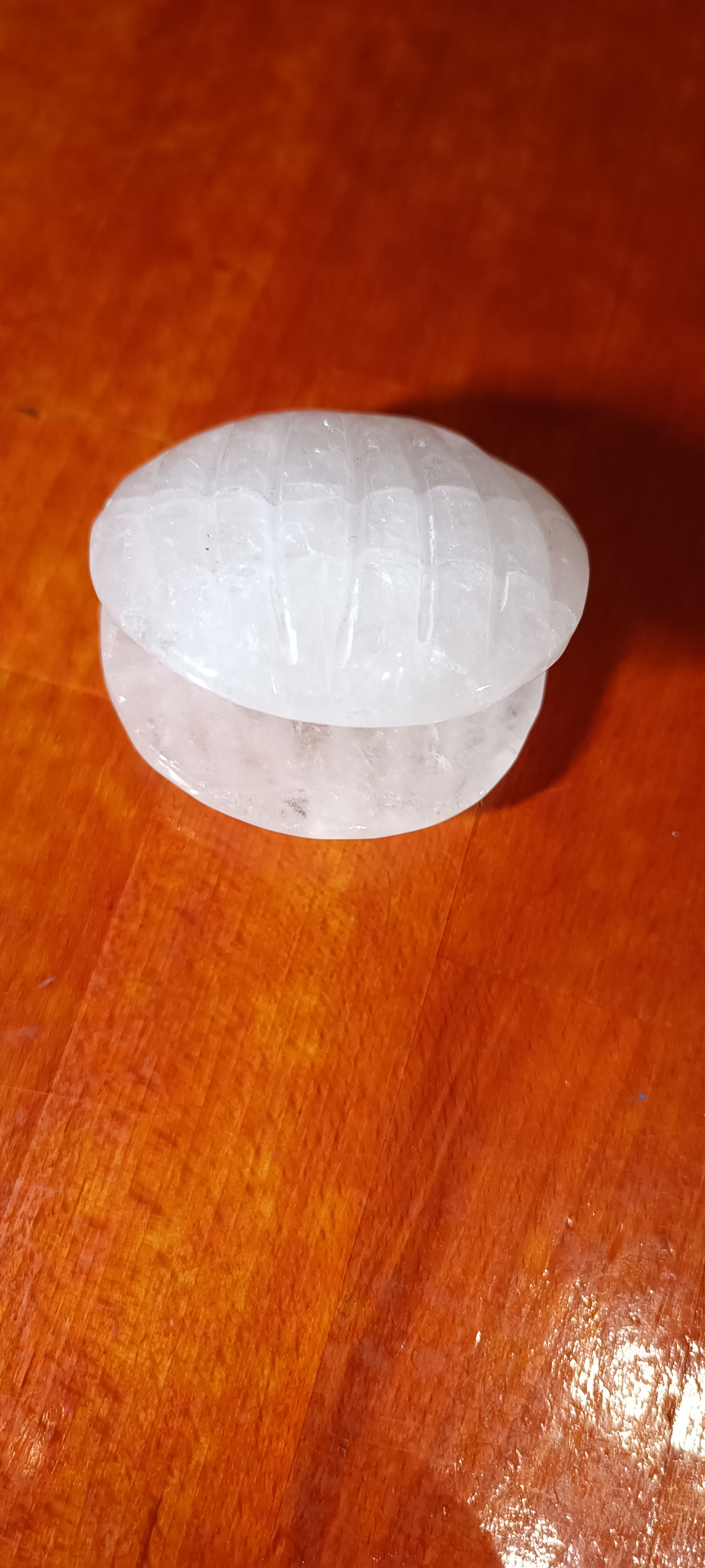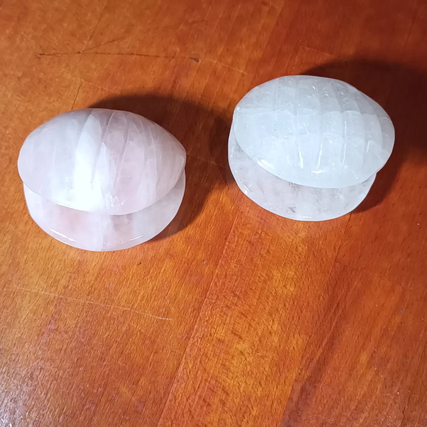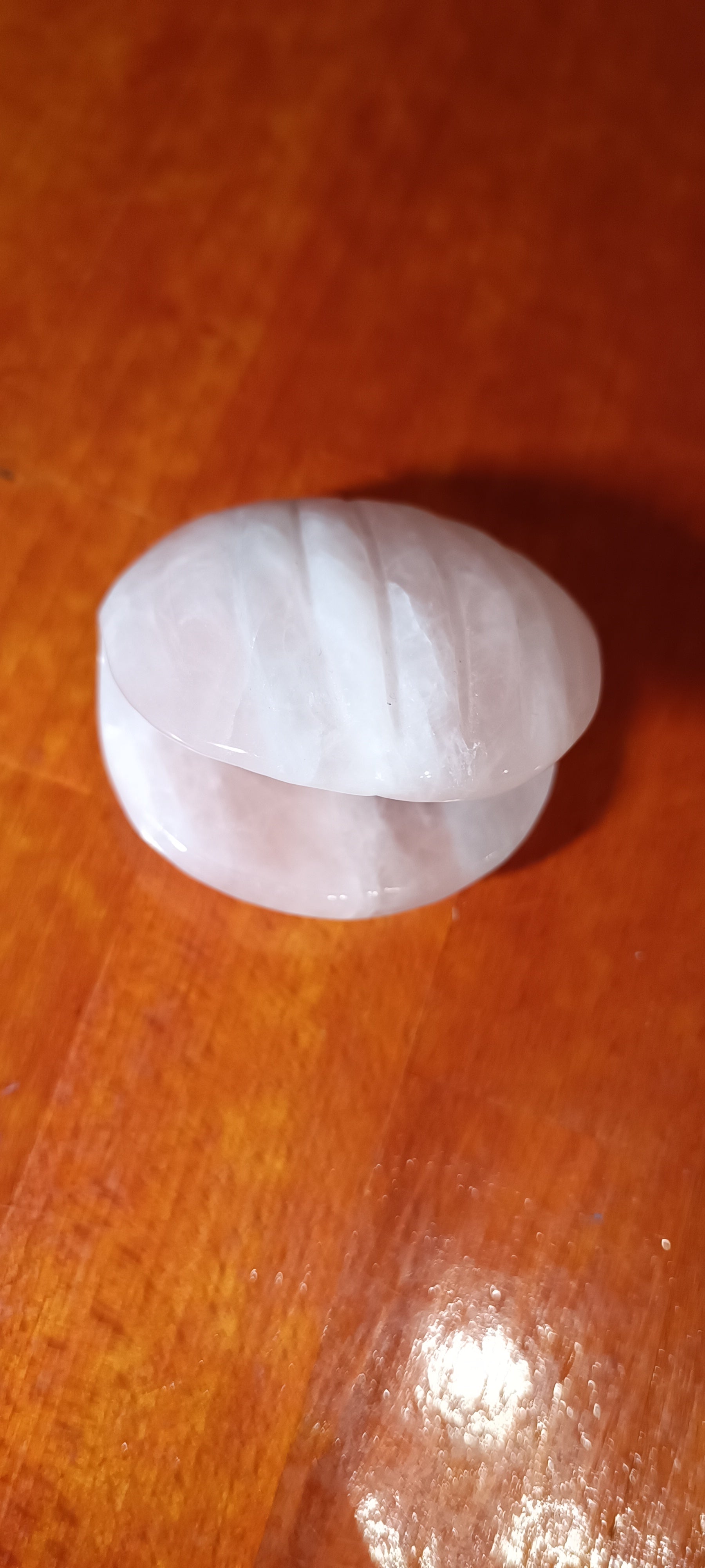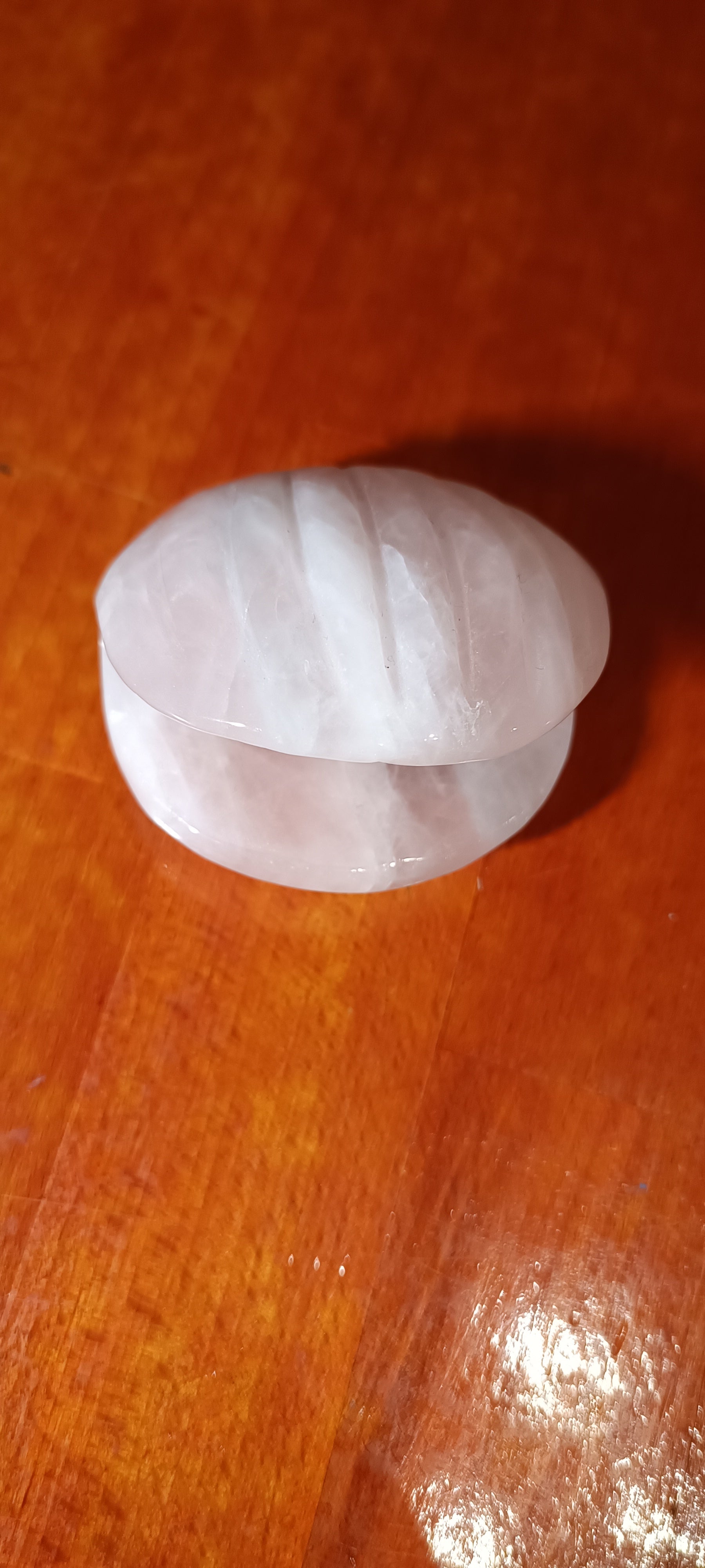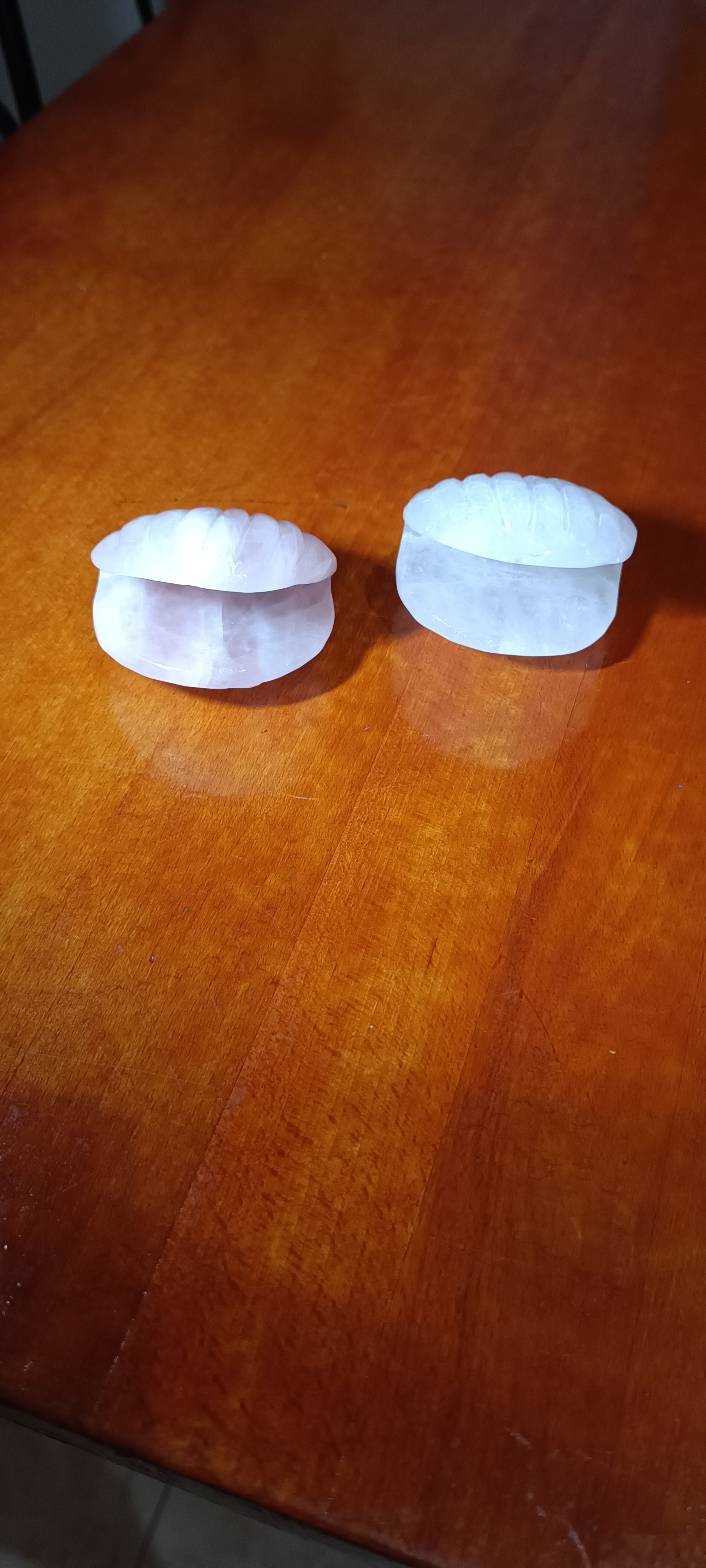 Mineral en forma de concha. De Cuarzo Cristal de Roca o de Cuarzo Rosa.