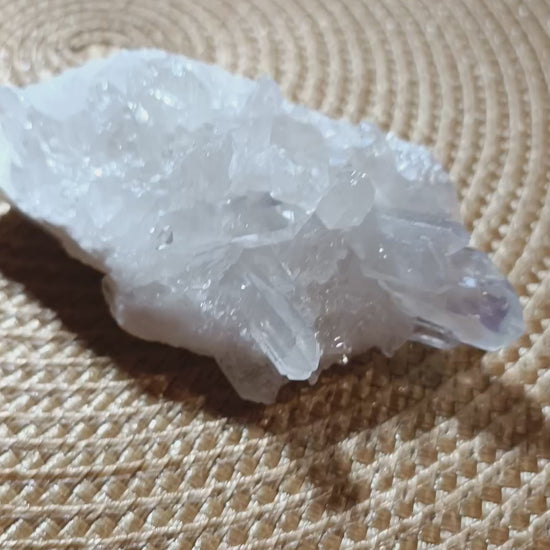 Es un cuarzo Cristal de Roca tratado con una aleación de Platino y Plata.