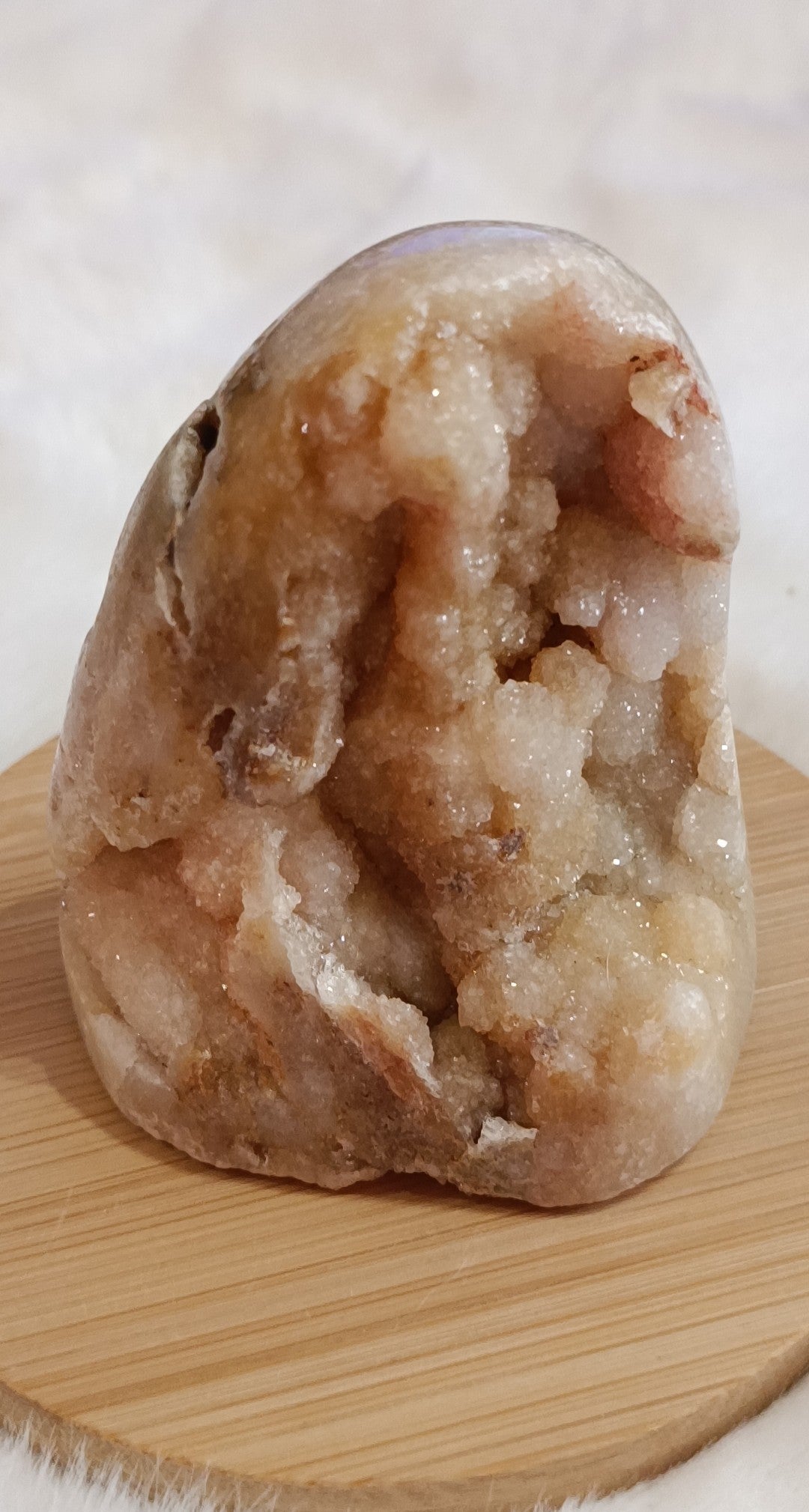 Estimula la apertura al amor y a la guía de su propia alma. Como buen cuarzo, absorbe las energías cuestionables, neutras y malas, limpiándolas y liberándolas de nuevo. Equilibra las emociones, ofreciendo sentimientos de comprensión, calma, confianza y gracia. Incrementa la intuición. Ayuda en los casos de ansiedad, reduce el estrés. Induce a tener sueños lúcidos. Ayuda a abrirse a recibir el amor, tanto de pareja como de familia. Es de ayuda para superar traumas y bloqueos de una forma cálida. Ideal para trabajar en tu autoestima. Útil para trabajar y sanar tu "niño interior".