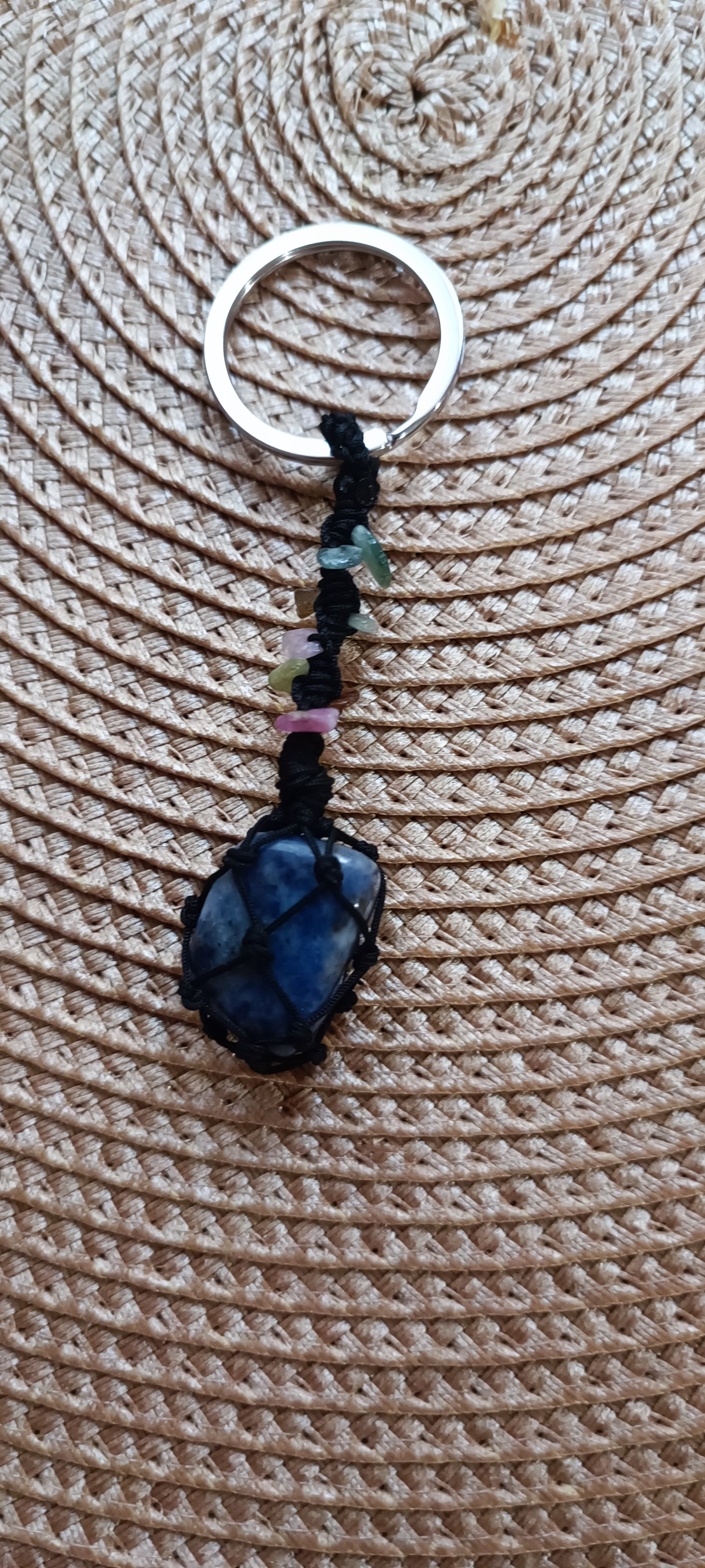 Llavero con el mineral que quieras envuelto en una red de Macramé.