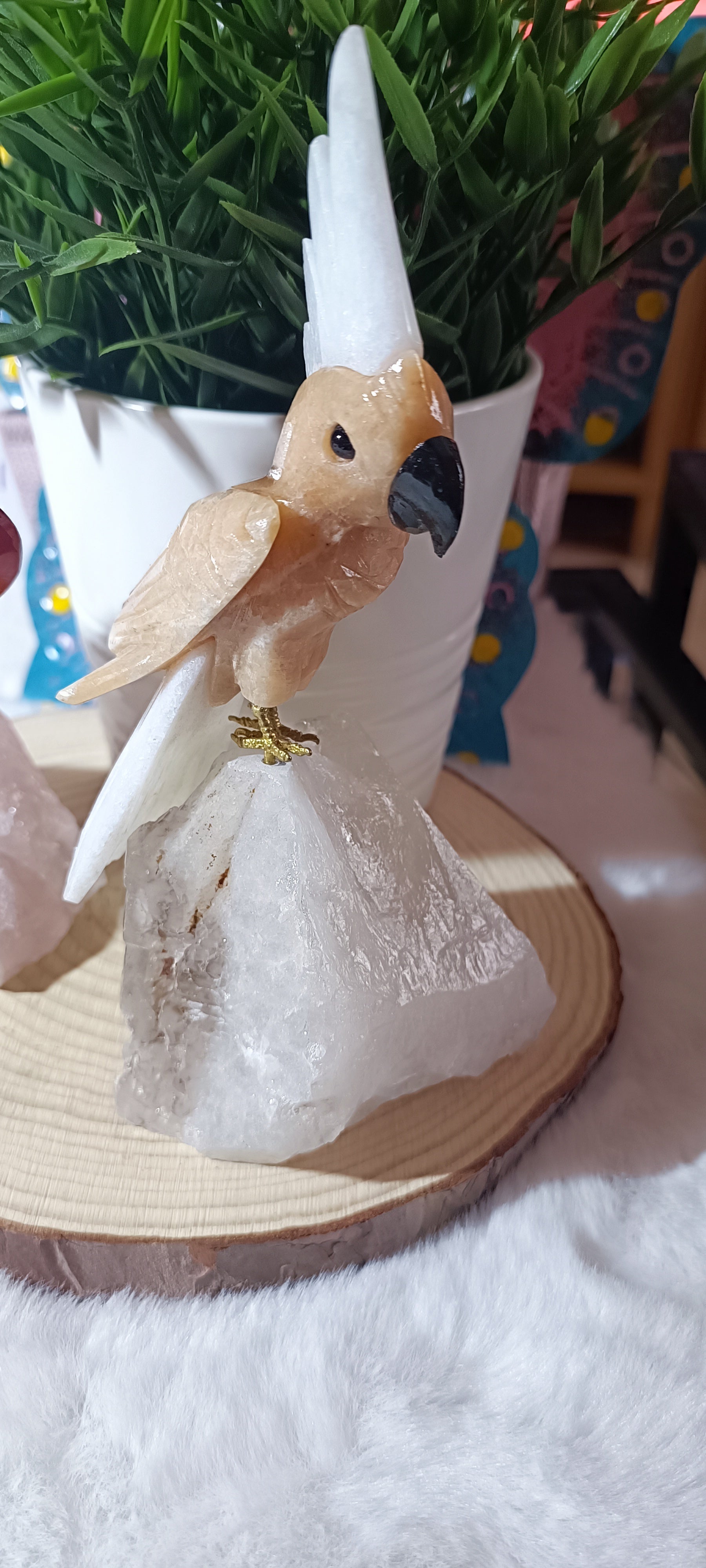 Loro exótico Grande en Cuarzo Rosa o Cuarzo Cristal de Roca