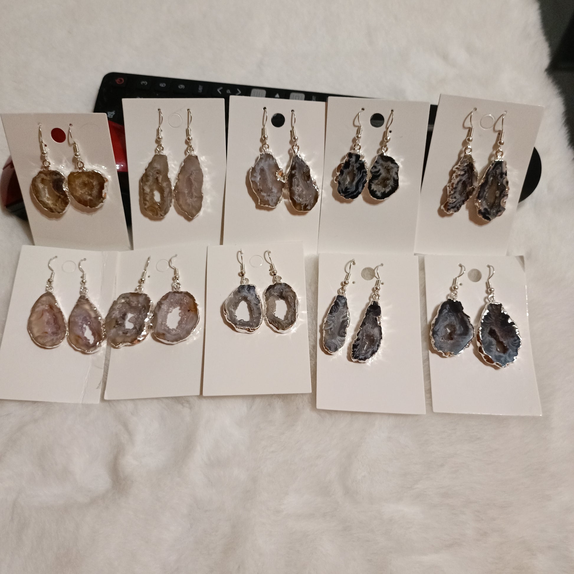 Pendientes traídos desde Brasil directamente. Son drusas de Ágata recubiertas de plateado.