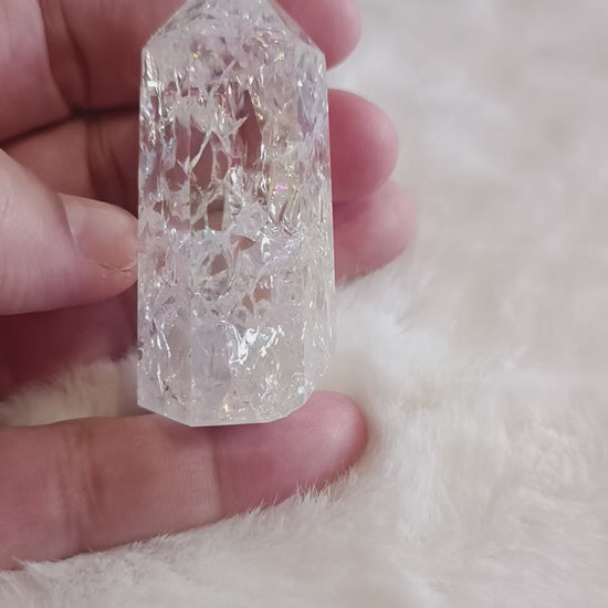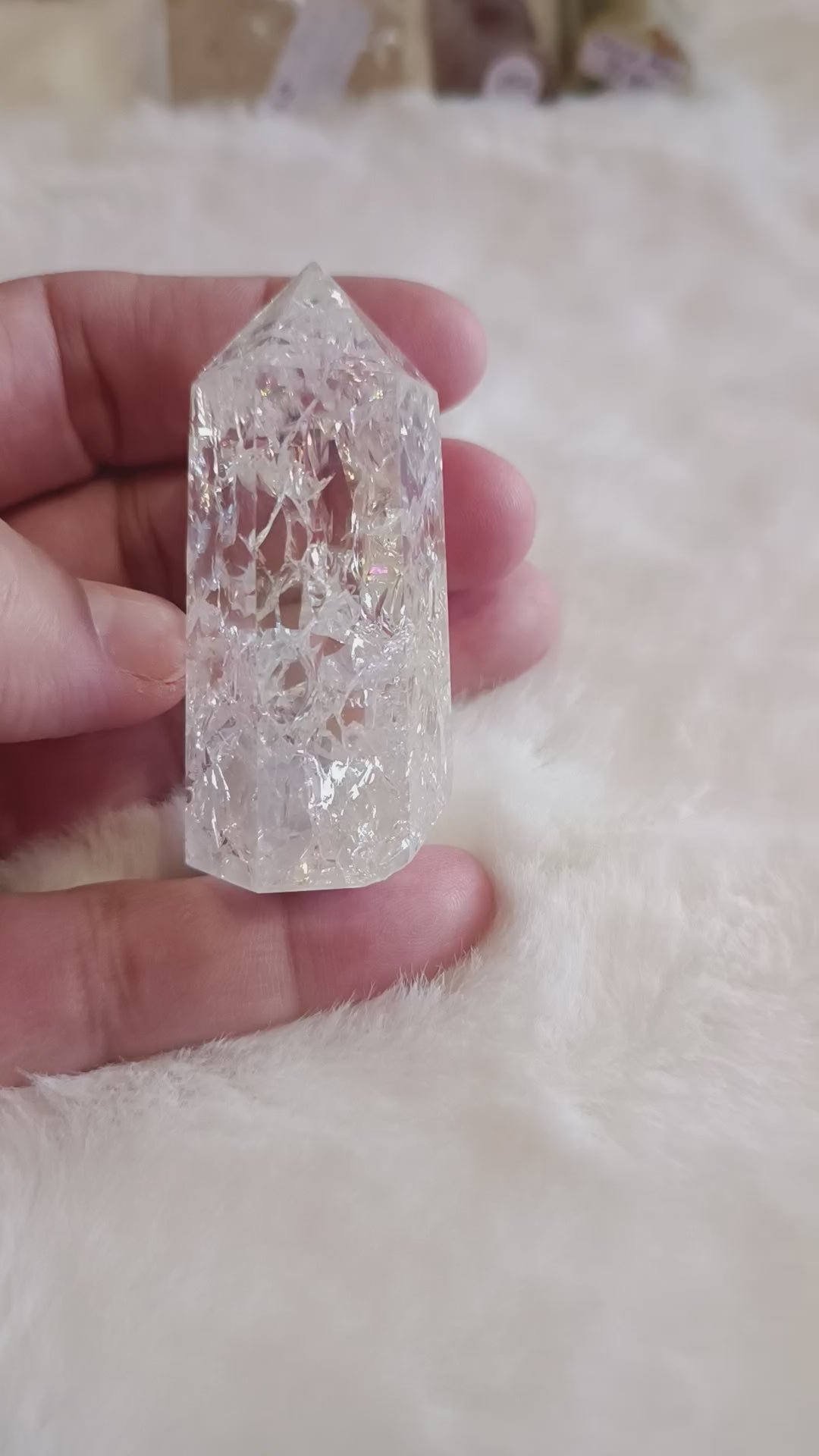 Punta Generadora Cuarzo Cristal de Roca Craquelado y Aura